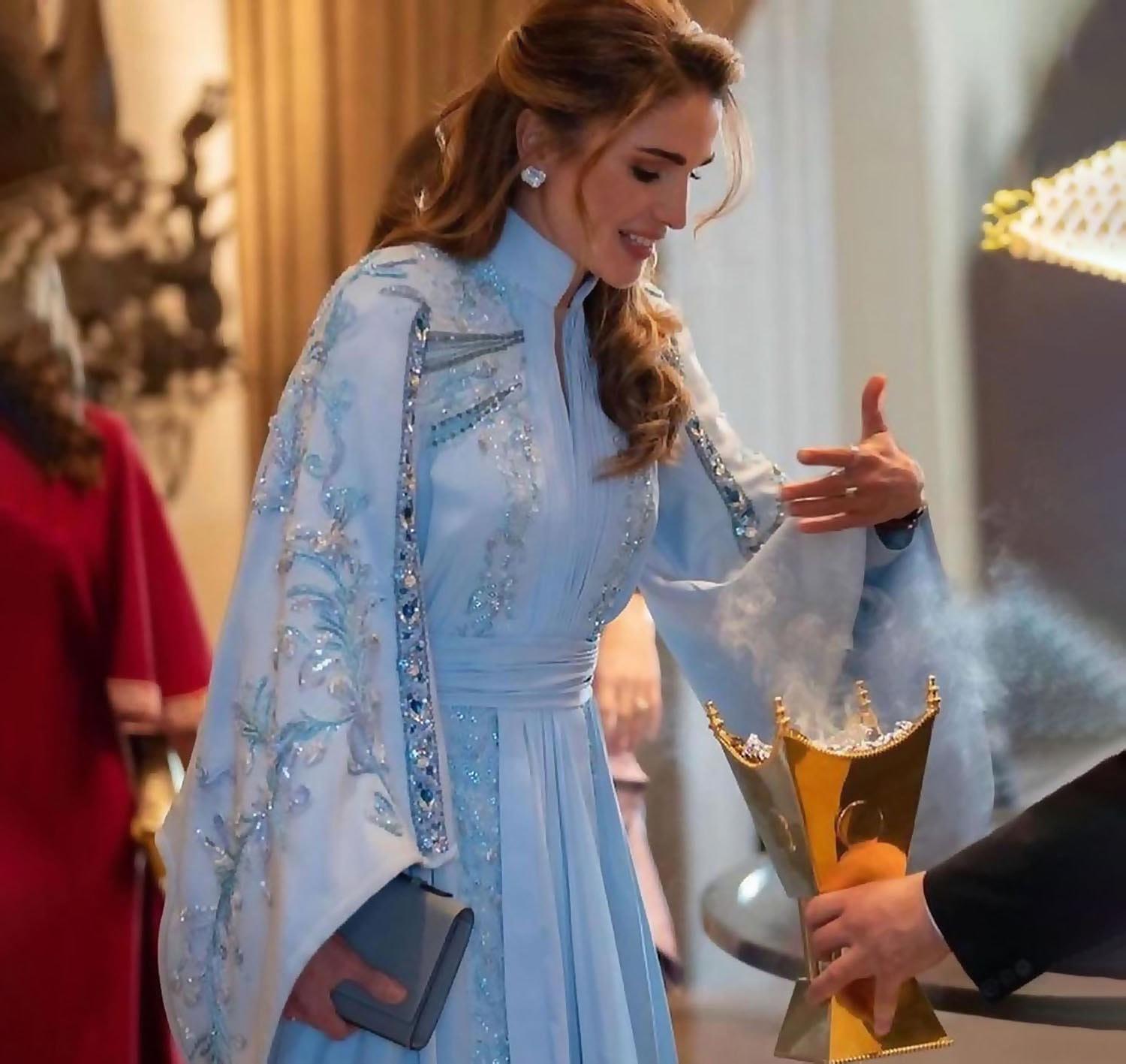 الحقيبة والحلي التي ظهرت بها جلالة الملكة رانيا في حفل الحناء الذي أقيم في العاصمة عمّان قبل يومين، احتفالاً بزواج ولي العهد الأردني سمو الأمير الحسين بن عبدالله على رجوة آل سيف، والمقرر في الأول من يونيو القادم، هي قطعة لا شبيه لها في العالم، وفق تأكيدات فاتن مطر التي اعتبرت ارتداء.....