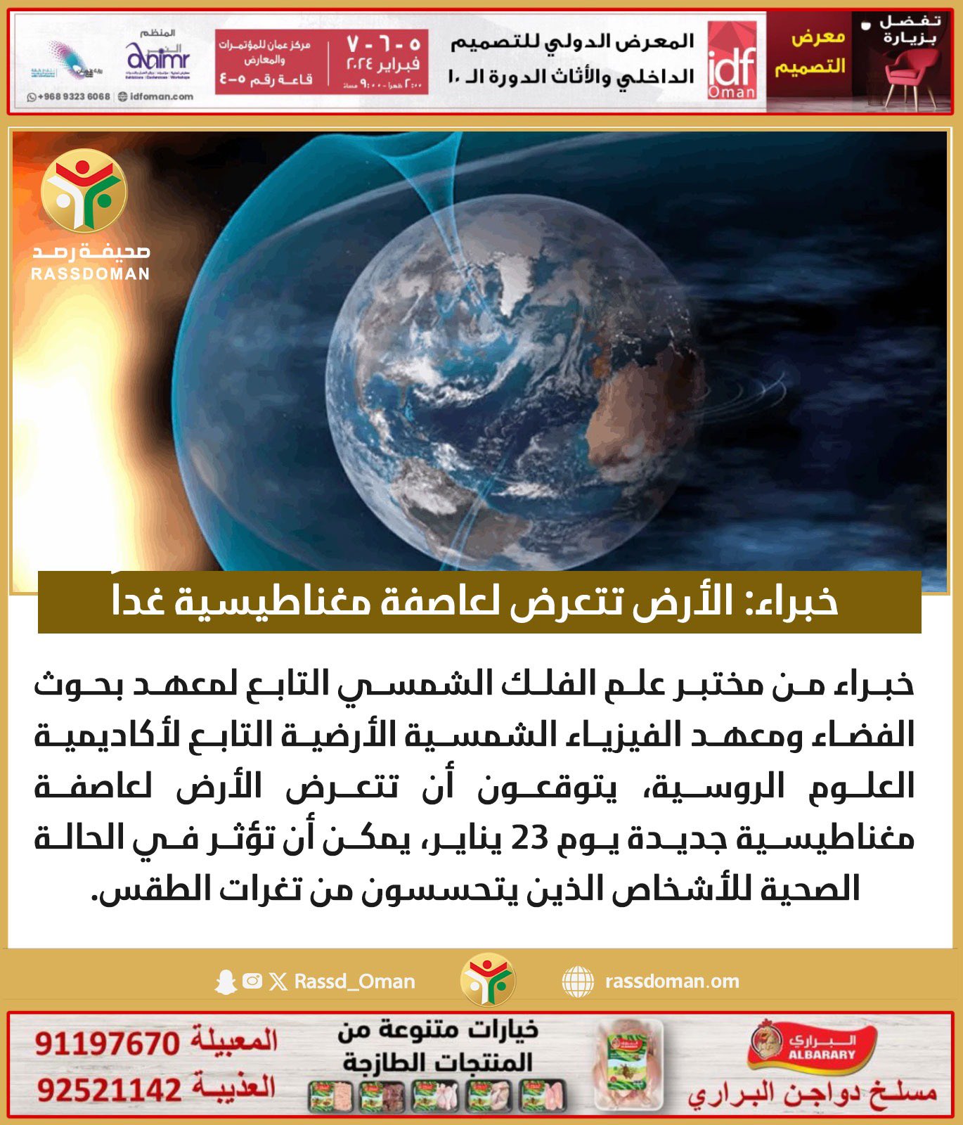 خبراء: الأرض تتعرض لعاصفة مغناطيسية غداً .. يمكن أن تؤثر في الحالة الصحية للأشخاص الذين يتحسسون من تغرات الطقس