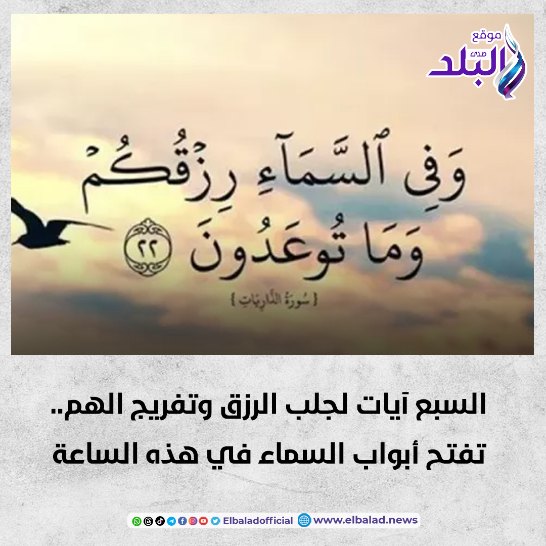 السبع آيات لجلب الرزق وتفريج الهم والكرب، واحدة من الأمور التي يغفل الكثيرون فضلها خاصة في ساعة التجلي وقبول الدعاء واستجابته في هذه الساعة من الليل التي تعرف بموعد النزول الإلهي فـ ما هي السبع آيات لجلب الرزق وتفريج الهم والكرب؟، وما صحتها؟.