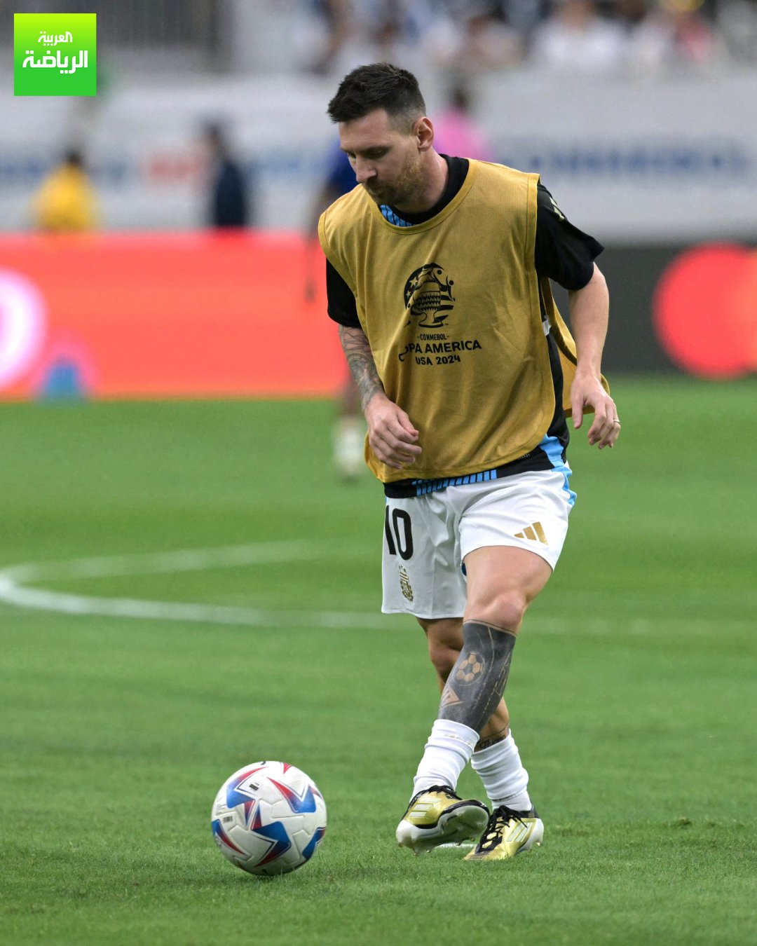 ميسي خلال عمليات الإحماء قبل مواجهة الإكوادور _رياضة