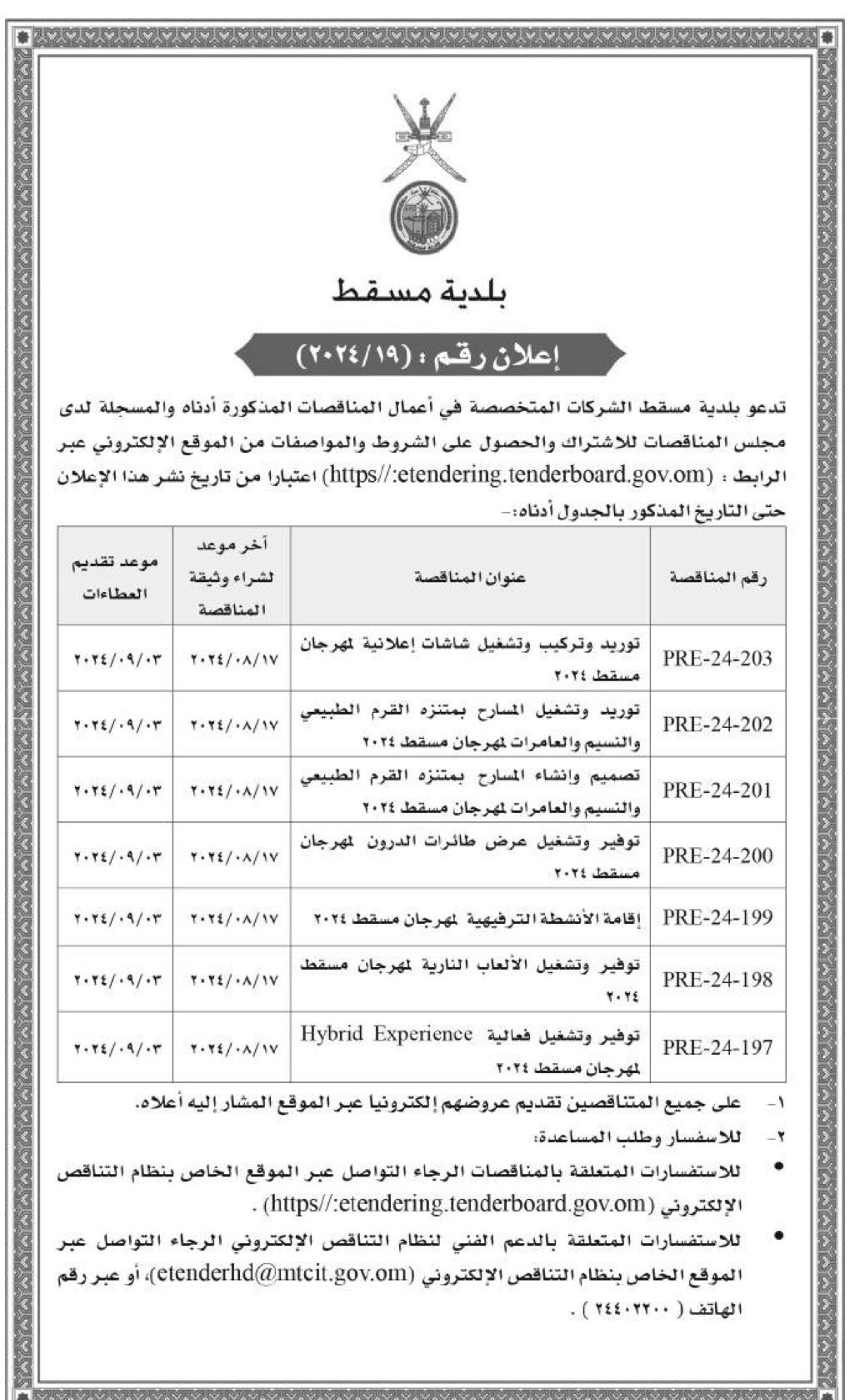 بلدية مسقط تعلن عن مناقصات مختصة بأنشطة وفعاليات #مهرجان_مسقط_2024