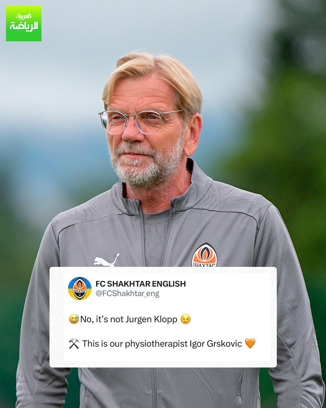 بعد انتشار صورته بسبب الشبه الكبير بينه وبين يورغن كلوب . نادي شاختار دونيتسك عبر حسابه في منصة "إكس" . "لا، ليس يورغن كلوب" . " إنه أخصائي العلاج الطبيعي في النادي إيغور غريسكوفيتش". _رياضة
