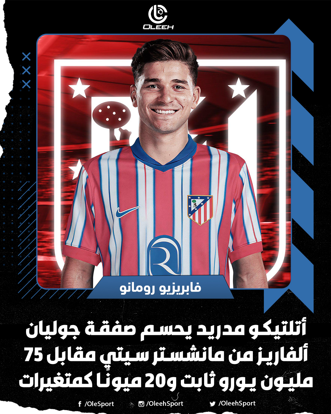 جوليان ألفاريز لاعبًا لأتلتيكو مدريد الموسم القادم بحسب الصحفي فابريزيو رومانو. . وافق أتلتيكو مدريد على دفع ما مجموعه 95 مليون يورو للحصول على خدمات المهاجم الأرجنتيني. . سيوقع ألفاريز على عقود لمدة 5 مواسم مع الروخيبلانكوس