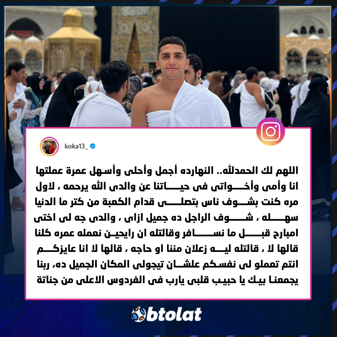 أحمد نبيل كوكا لاعب الأهلي عبر "انستجرام" . "النهارده أجمل وأحلى وأسهل عمرة عملتها انا وأمى وأخواتى فى حياتنا عن والدى الله يرحمه"