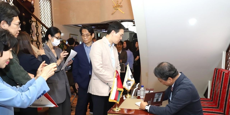 سول في 25 سبتمبر /العُمانية/ أقيم بمقر سفارة سلطنة عُمان في جمهورية كوريا حفل تدشين كتاب العلاقات العمانية الكورية بعنوان "سلطنة عُمان، التعاون والصداقة التاريخية مع جمهورية كوريا للكاتب الكوري الدكتور "هي سو لي" وذلك تحت رعاية سعادة كيم تشانغ مو الأمين العام للجمعية الكورية العربية.