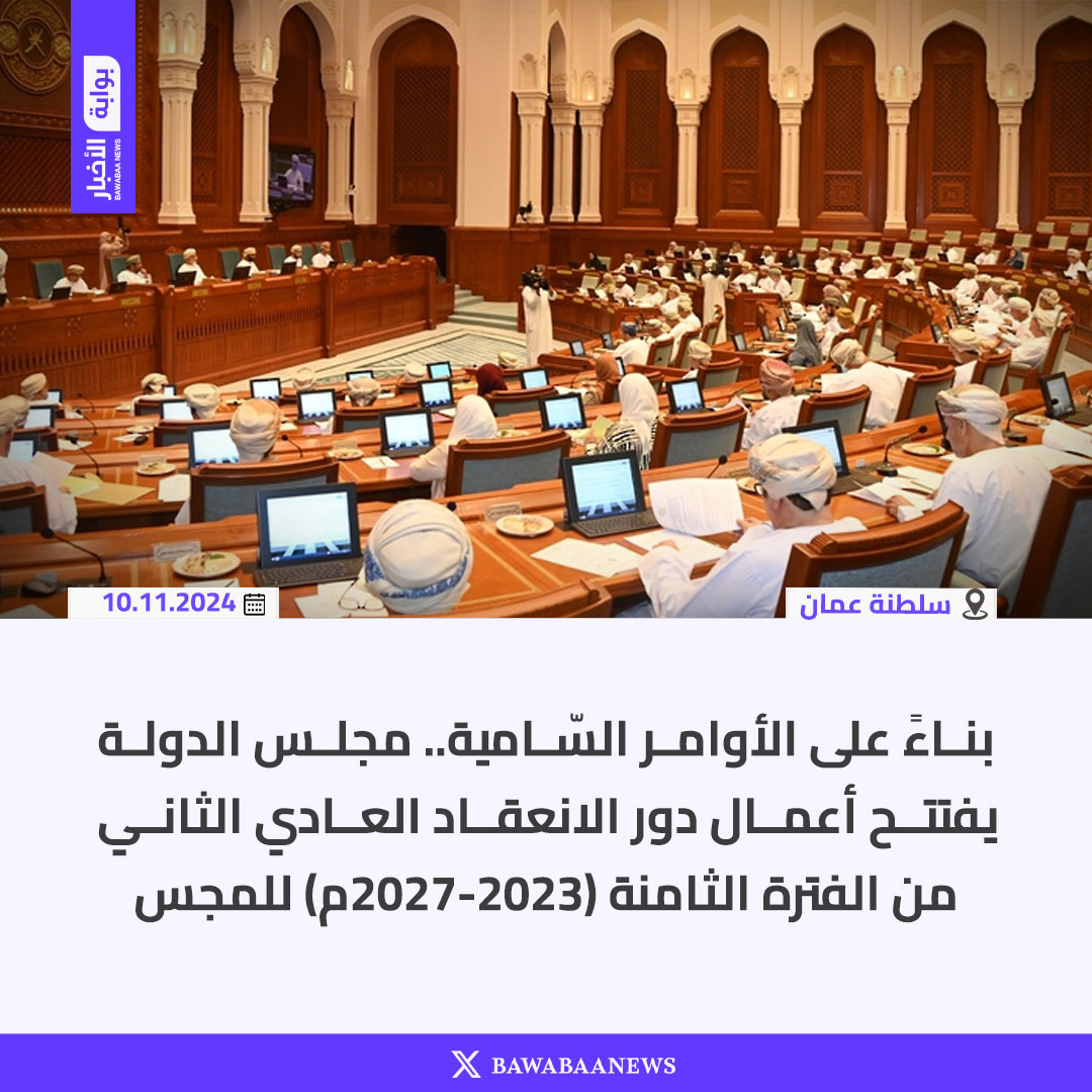 بناءً على الأوامر السّامية.. مجلس الدولة يفتتح أعمال دور الانعقاد العادي الثاني من الفترة الثامنة (2023-2027م) للمجس. #عُمان