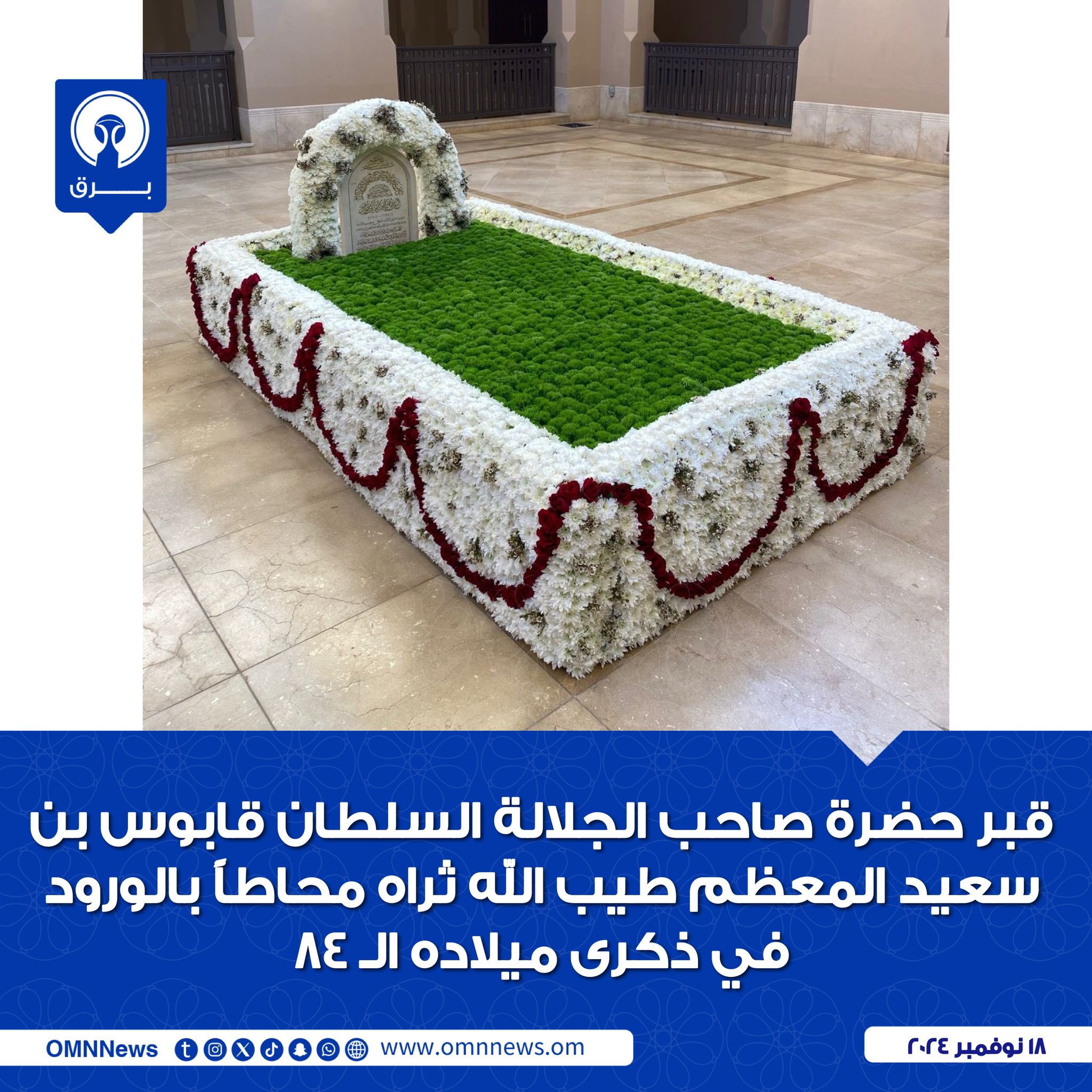 قبر حضرة صاحب الجلالة السلطان قابوس بن سعيد المعظم -طيب الله ثراه- محاطاً بالورود في ذكرى ميلاده ال 84