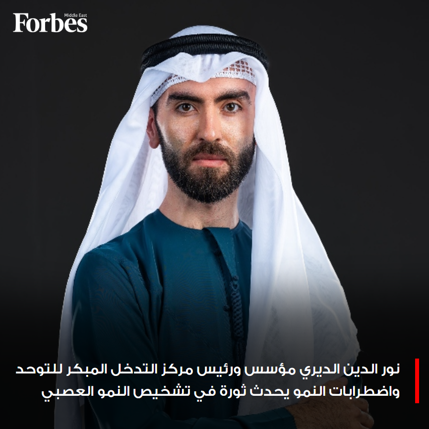 المراكز الأولى من نوعها في منطقة الشرق الأوسط وشمال أفريقيا ولمواجهة التحديات من حيث التشخيص، أسس الديري بعمر 26 عامًا مراكز (EICADD) في عام 2022، انطلاقًا من الأردن والإمارات. وتُعد هذه المراكز الأولى من نوعها في منطقة الشرق الأوسط وشمال أفريقيا، التي تعتمد على الذكاء الصناعي لتشخيص اضطرابات النمو العصبي. ففي هذه المراكز تحصل الأسر على تشخيصات دقيقة ومبكرة، بالإضافة إلى خطط علاجية شخصية قائمة على تحليلات صحية متقدمة. يشرح الديري: "يجمع نهجنا بين التشخيص الدقيق وتحليل الصحة وإعادة التأهيل، مع التركيز على رؤية شاملة للطفل". ويضيف أن الهدف هو تزويد الأسر بتحليلات عملية ودعم متكامل، لتعزيز مسار نمو أطفالهم. ومن خلال تحديد السمات الجينية والخصائص الفسيولوجية المرتبطة، يتجاوز نهج (EICADD) إدارة الأعراض التقليدية، ليعالج الأسباب الجذرية لاضطرابات النمو العصبي.