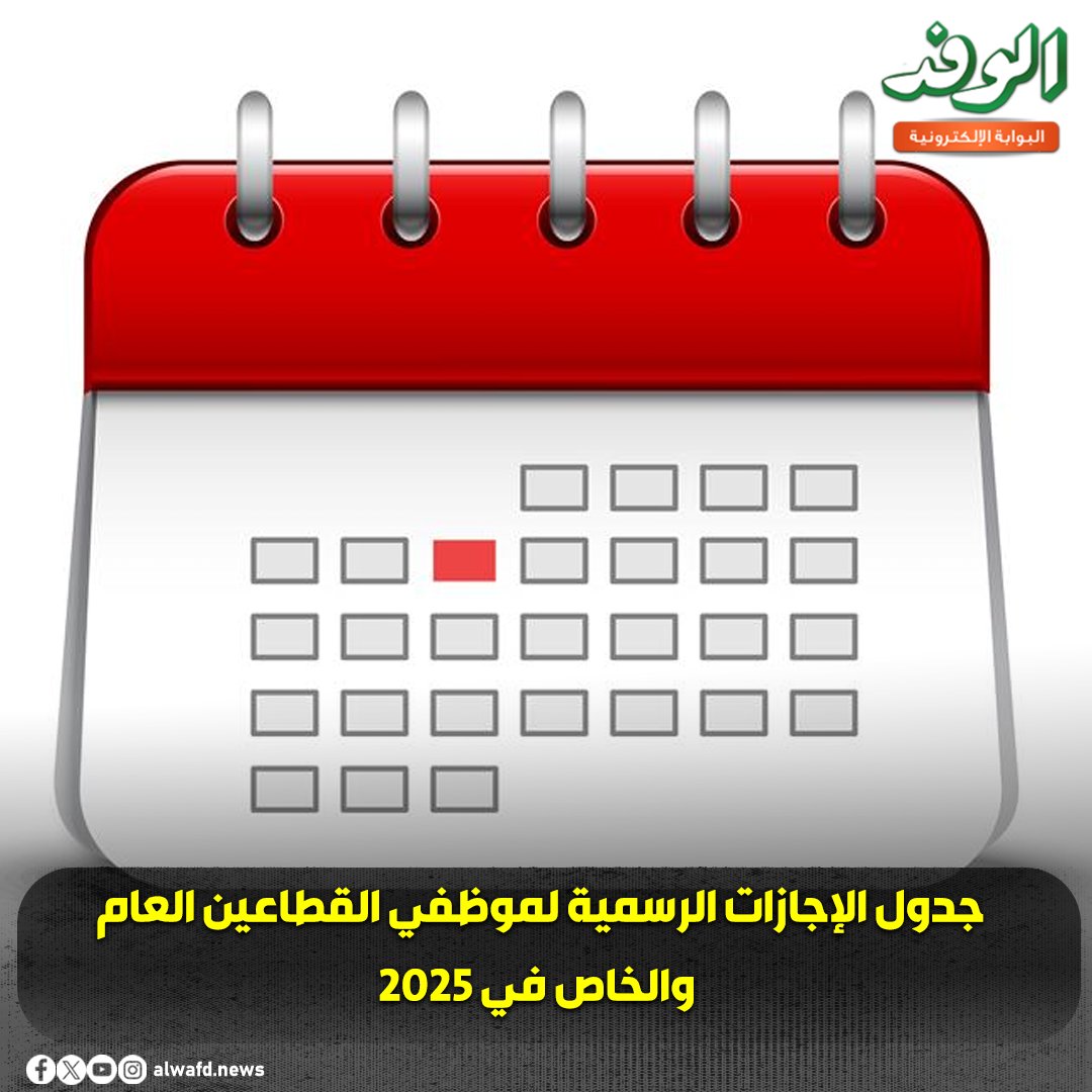 ويترقب الموظفون، سواء في القطاع الحكومي أو الخاص، مواعيد وجدول الإجازات الرسمية في 2025، سواء المرتبطة بالمناسبات الوطنية، أو الأعياد الدينية.