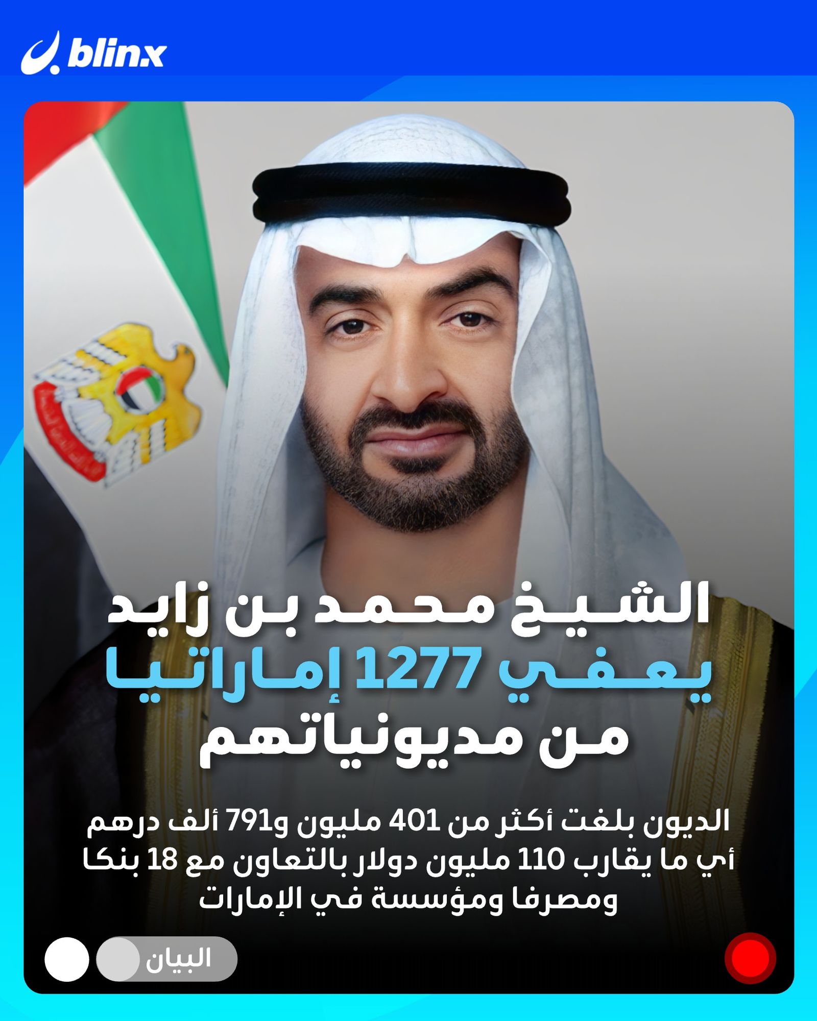 الشيخ محمد بن زايد رئيس دولة الإمارات يعفي 1277 مواطنا إماراتيا من مديونياتهم التي بلغت 401 مليون و791 ألف درهم