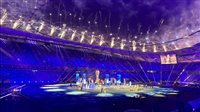 وبعدها أقيمت فقرات استعراضية شارك بها عدد من الأطفال يلعبون كرة القدم على الشواطئ الرملية، ويمر بجانبهم المراكب الشرعية في المياه التي ترمز للخليج العربي.