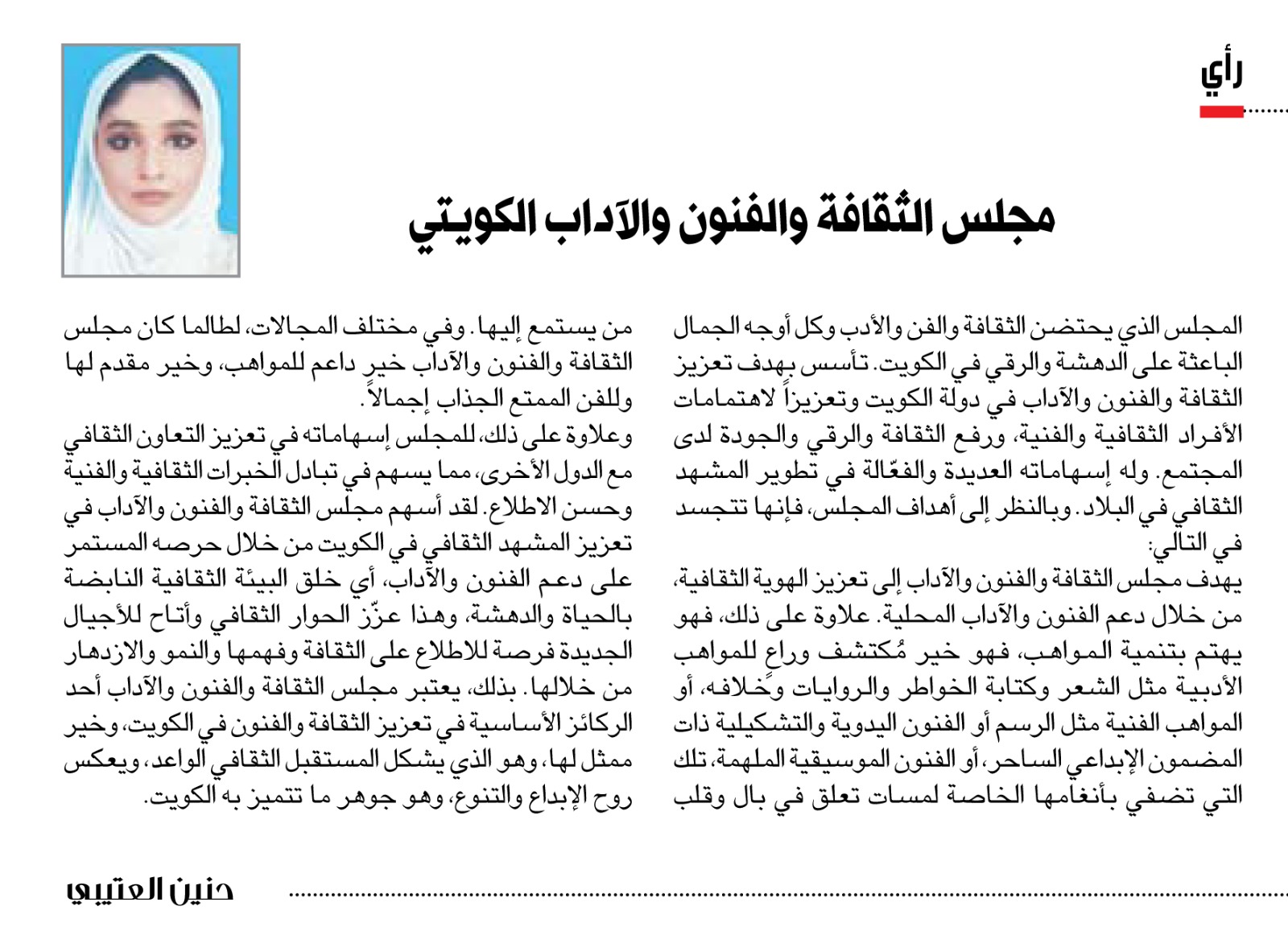 حنين العتيبي: مجلس الثقافة والفنون والآداب الكويتي