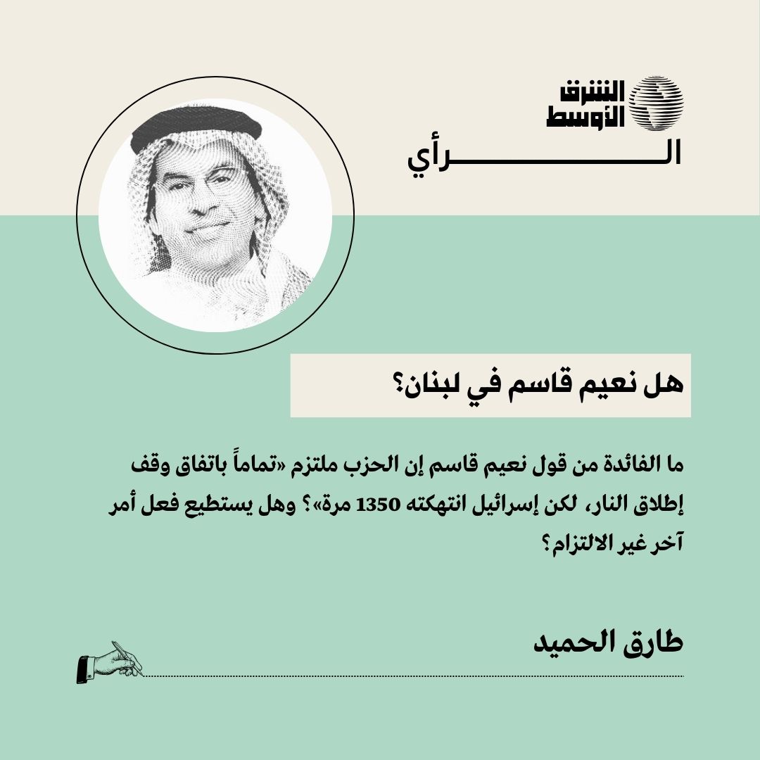 تقول لي إنه خطاب مسجل. حسناً، لماذا تم بثه؟ هل قاسم فعلاً صاحب القرار في «حزب الله»؟ وهل قاسم أصلاً موجود في لبنان؟ الأسئلة كثيرة هنا، ولا بد أن تُطرح وتناقش على رؤوس الأشهاد. فعندما يقول قاسم إن الحزب فوجئ بقوة إسرائيل، فلمَن يُوجه هذا الكلام؟ هل هو تبرير للحاضنة؟ وهل الحروب لعبة؟ سبق أن قال حسن نصر الله، وبعد حرب عام 2006 في لبنان، إنه لو كان يعلم العواقب لما أقدم على الحرب، والآن يقول قاسم إنهم فوجئوا بقوة إسرائيل!