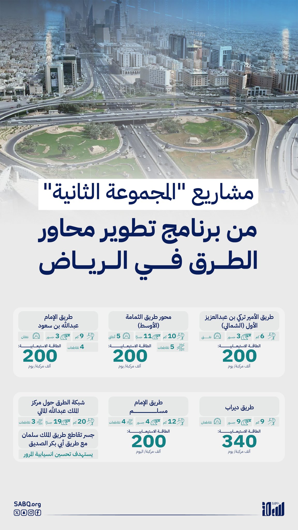بتكلفة تتجاوز ال8 مليارات ريال.. الهيئة الملكية لمدينة الرياض تعلن البدء في تنفيذ "المجموعة الثانية" من مشاريع تطوير محاور الطرق الدائرية والرئيسة