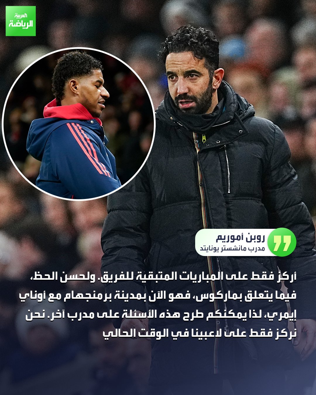 أموريم ردا على سؤال يخص راشفورد. هو الآن بمدينة برمنجهام مع أوناي إيمري، لذا يمكنكم طرح هذه الأسئلة على مدرب آخر. _رياضة