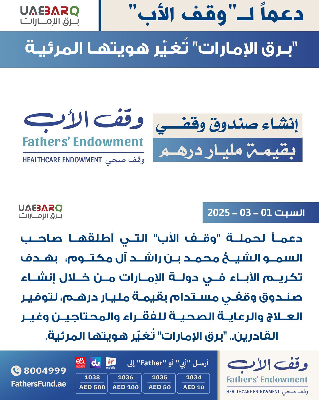 دعماً ل "وقف الأب".. "برق الإمارات" تُغيّر هويتها المرئية