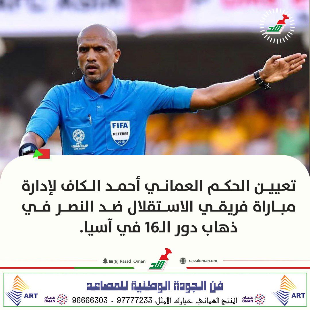 تعيين الحكم العماني أحمد الكاف لإدارة مباراة فريقي الاستقلال ضد النصر في ذهاب دور ال16 في آسيا