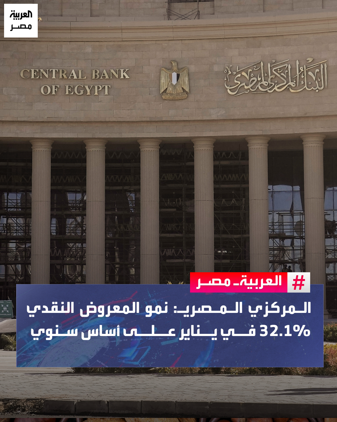 أظهرت بيانات البنك المركزي المصري نمو المعروض النقدي 32.1% على أساس سنوي في يناير 2025، ليصل إلى 11.86 تريليون جنيه مصري (234.39 مليار دولار)، ارتفاعًا من 8.98 تريليون جنيه في يناير 2024. _مصر