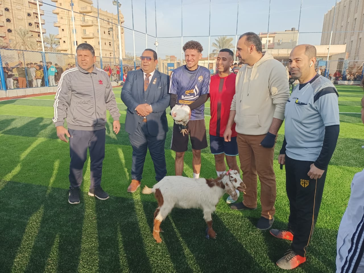 شهدت الدورة الرمضانية المقامة بقرية كفر الروك التابعة لمركز السنبلاوين محافظة الدقهلية، واقعة طريفة من نوعها إذ أهدت اللجنة المنظمة للدورة الرمضانية معزة جائزة أحسن لاعب خلال المباراة التى أقيمت بين فريقين خلال البطولة الرمضانية.