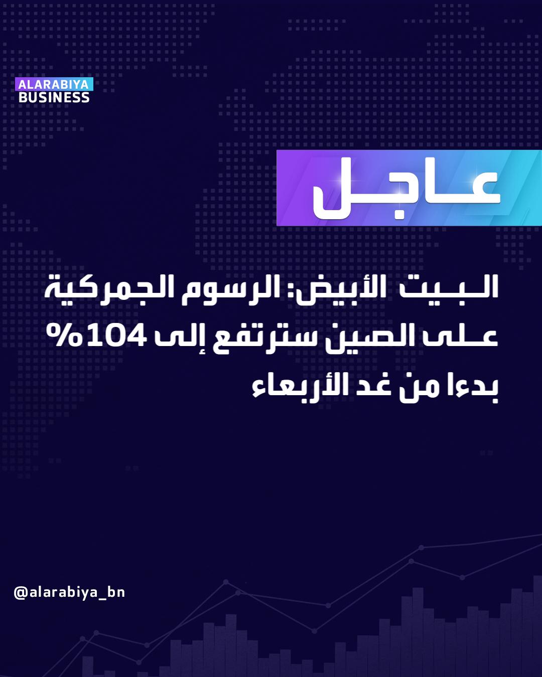 عاجل | البيت الأبيض: الرسوم الجمركية على الصين سترتفع إلى 104% بدءا من غد الأربعاء _Business