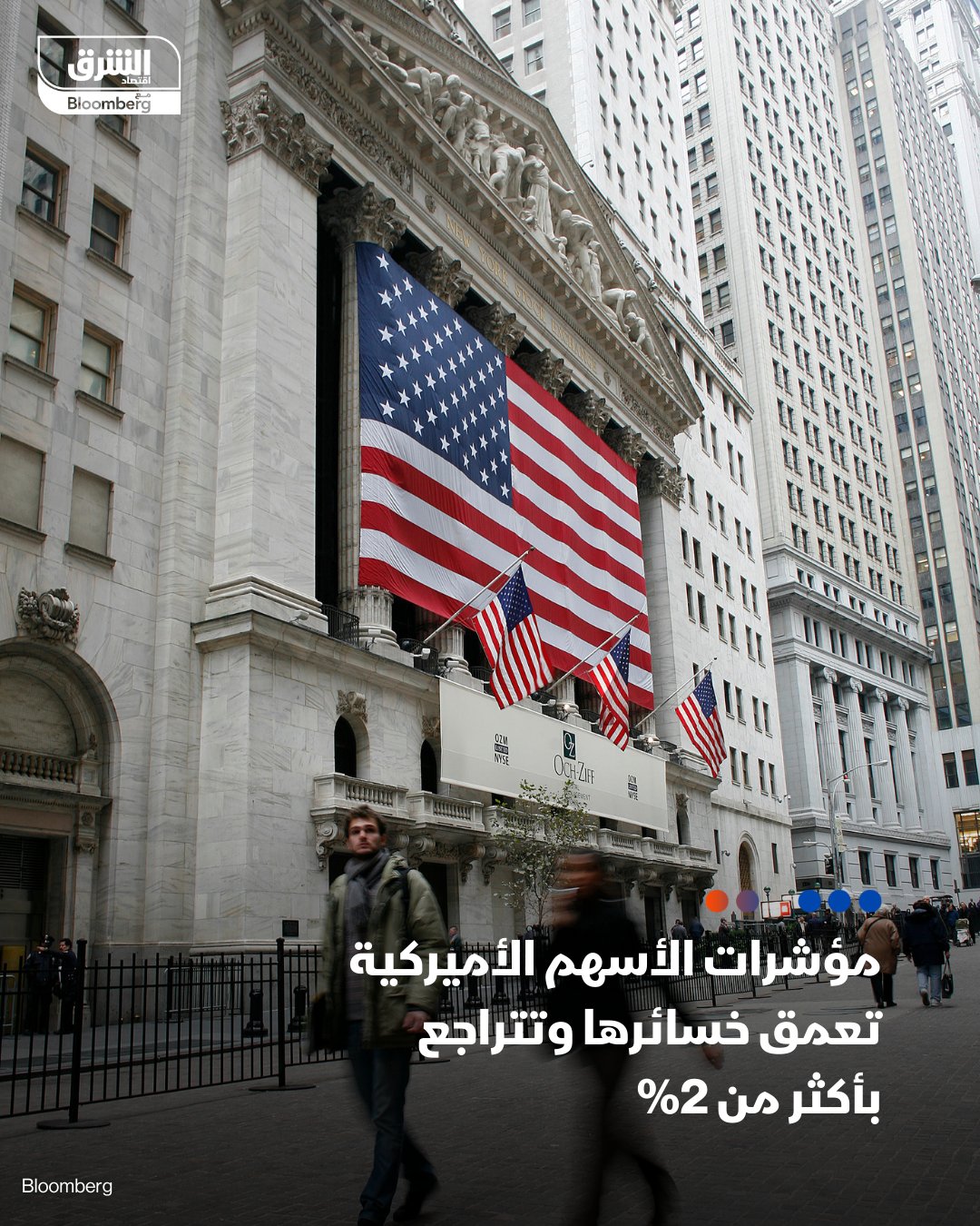 عاجل مؤشرات الأسهم الأميركية تعمق خسائرها وتتراجع بأكثر من 2% بعد إعلان أميركا عن فرض رسوماً جمركية بنسبة 104% على الصين بداية من الغد #اقتصاد_الشرق