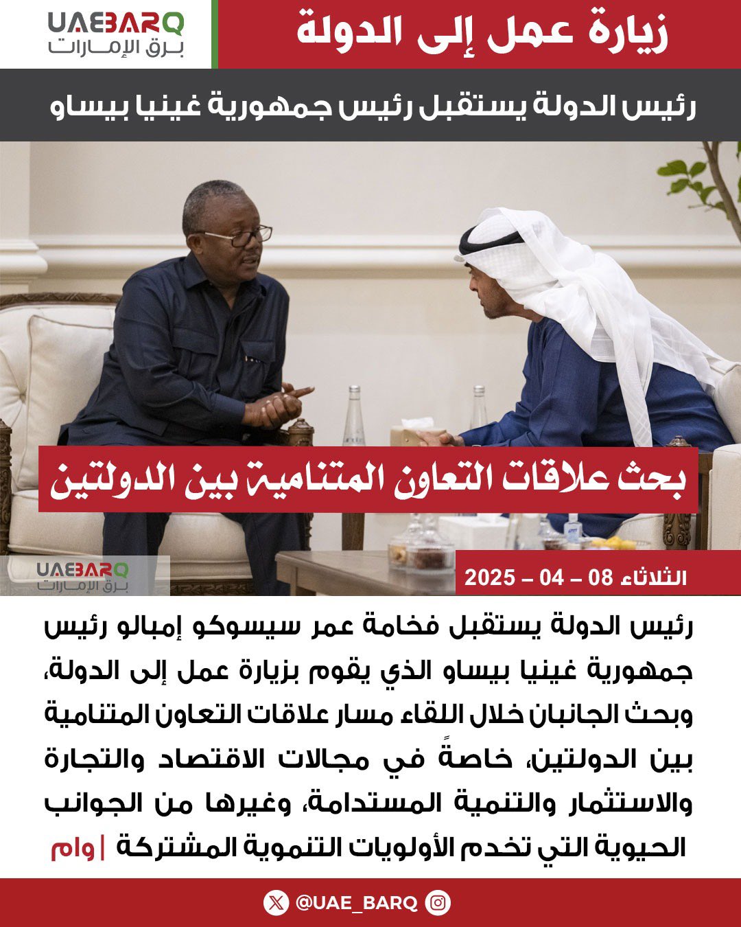 رئيس الدولة يستقبل رئيس جمهورية غينيا بيساو | وام