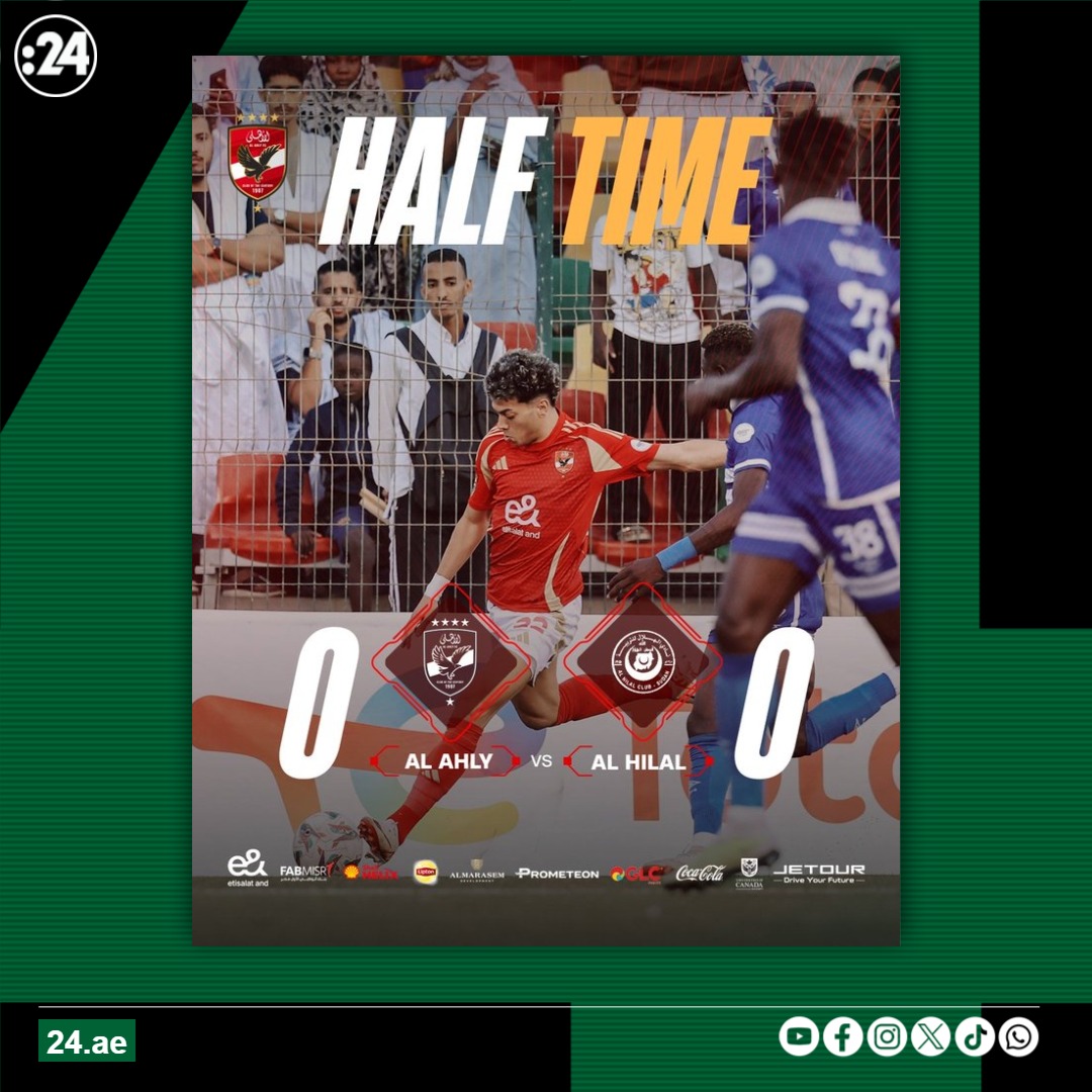 التعادل السلبي يخيم على الشوط الأول من قمة الهلال السوداني وضيفه الأهلي المصري في إياب ربع نهائي #دوري_أبطال_أفريقيا