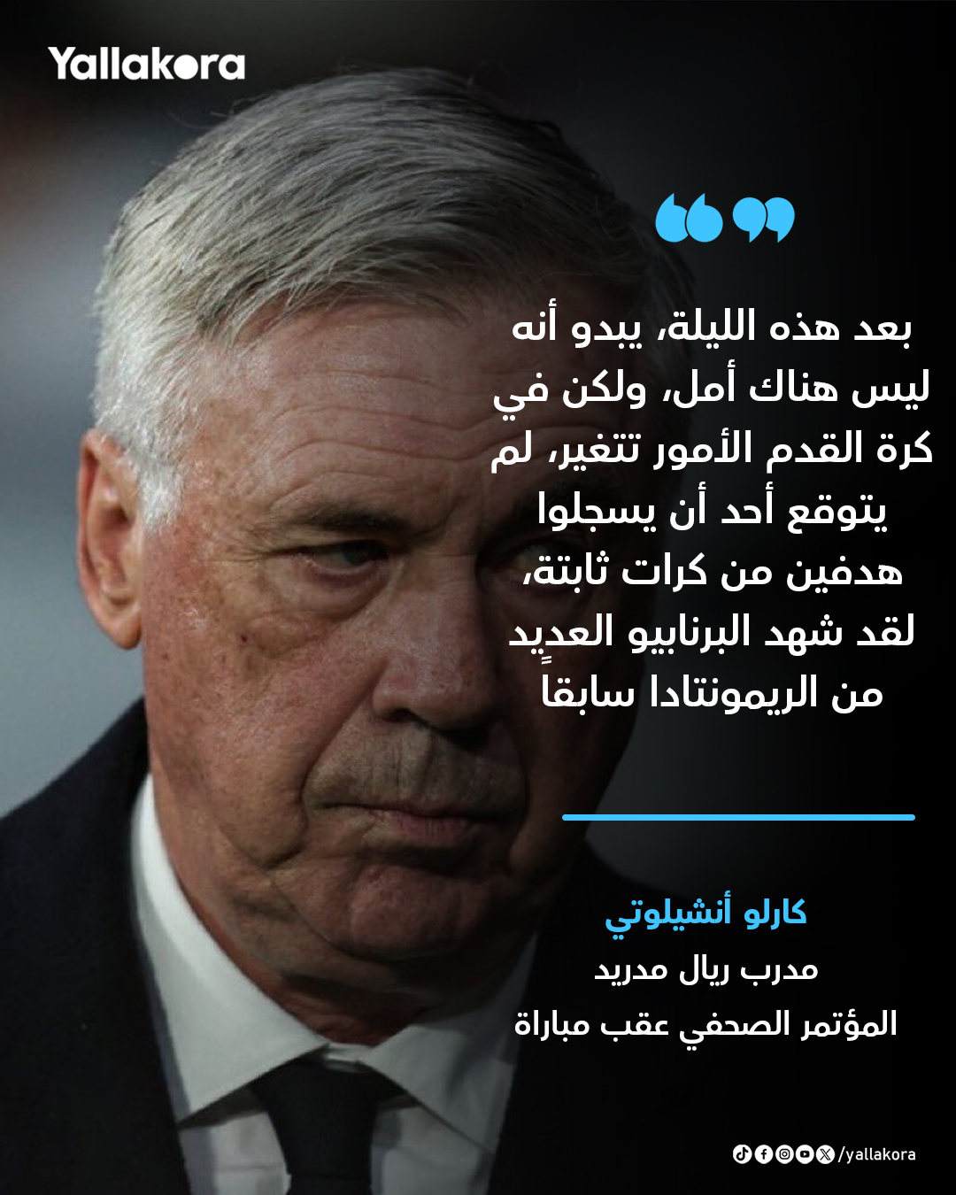 كارلو أنشيلوتي. "بعد هذه الليلة، يبدو أنه ليس هناك أمل، ولكن في كرة القدم الأمور تتغير"