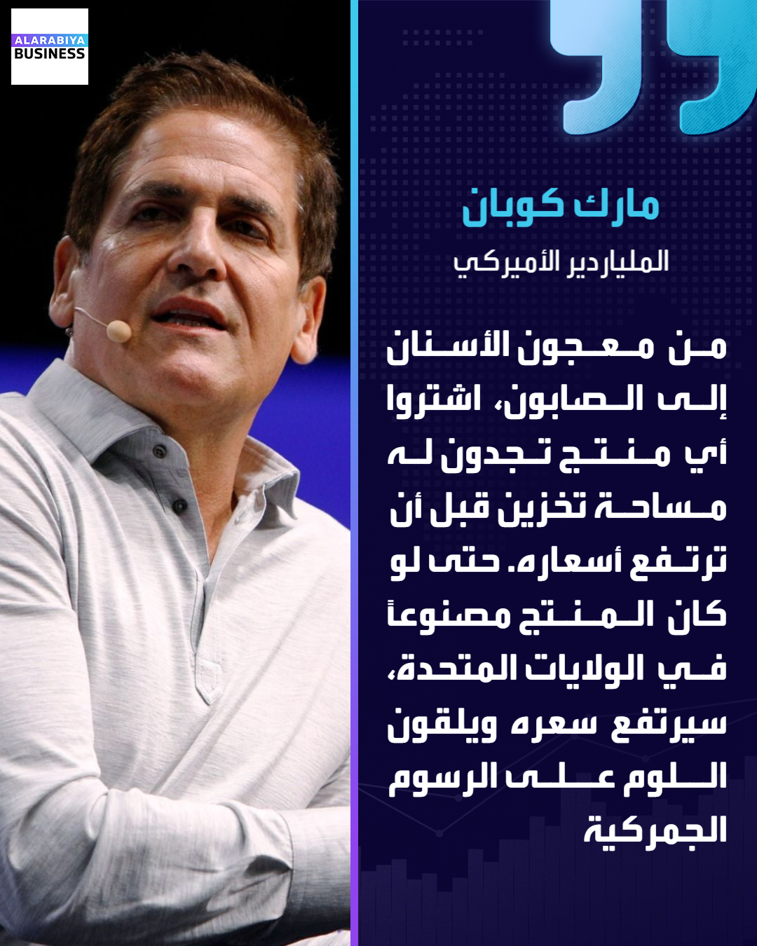 مارك كوبان: من معجون الأسنان إلى الصابون، اشتروا أي منتج تجدون له مساحة تخزين قبل أن ترتفع أسعاره. حتى لو كان المنتج مصنوعًا في الولايات المتحدة، سيرتفع سعره ويلقون اللوم على الرسوم الجمركية _Business