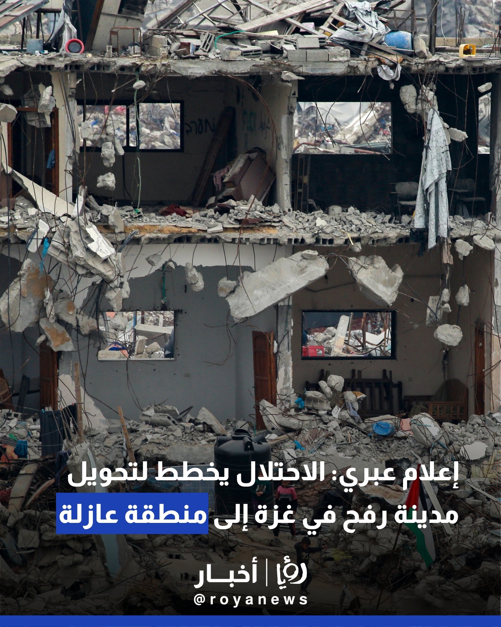 ذكرت وسائل إعلام عبرية أن جيش الاحتلال الإسرائيلي يخطط لتحويل مدينة رفح، التي تشكل نحو 20% من مساحة قطاع غزة، إلى منطقة عازلة.
