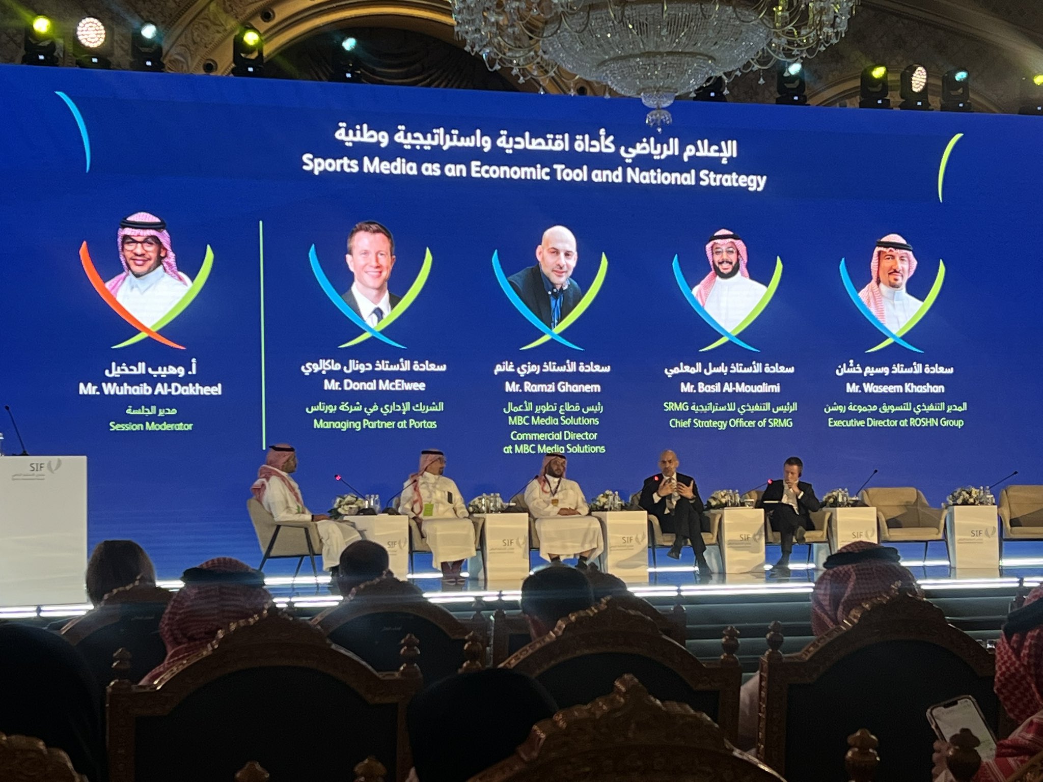 باسل المعلمي الرئيس التنفيذي للاستراتيجية SRMG خلال حديثه في منتدى الاستثمار الرياضي :- - في مجموعة SRMG سخرنا عدد من الصحف تهتم في العديد من المجالات ومنها "الشرق الأوسط" كذلك مانجا والرياضية والإقتصادية وثمانية وغيرها من صحف ومجلات فهي منظومة لدعم الإعلام الرياضي ورفع الاقتصاد