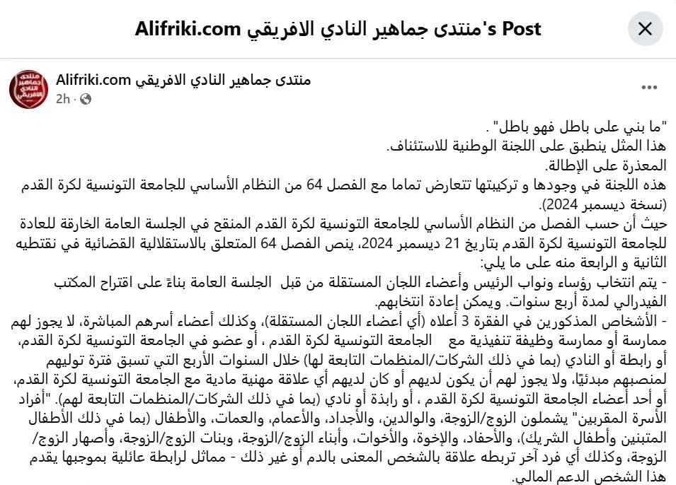 وبعد مباراة الإفريقي واتحاد بن قردان في الـ26 من يناير 2025، ضمن منافسات الجولة الـ16، قدّم الفريق الأول اعتراضًا إلى رابطة الدوري ضد جلوس مسؤول اتحاد بن قردان أيمن شندول على دكة بدلاء فريقه، رغم أنه كان معاقبًا ولم يقم بتسوية مبلغ المخالفة المالية.