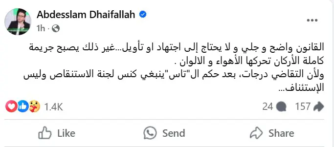 ولكن لجنة الاستئناف في الاتحاد التونسي لكرة القدم، رفضت قرار الرابطة، وهو ما يعني اعتماد النتيجة الحاصلة في الملعب وهي التعادل السلبي، وبالتالي، سيتم خصم نقطتين من رصيد النادي الإفريقي، ليصبح لديه 50 نقطة ويحتفظ بالمركز الثالث بفارق 3 نقاط عن الترجي والاتحاد المنستيري اللذين.....