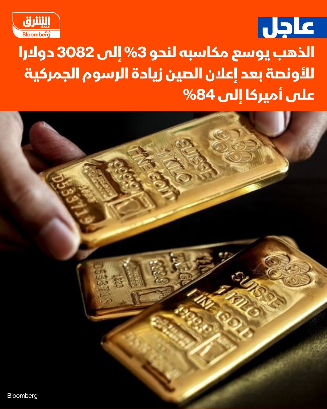 عاجل الذهب يوسع مكاسبه لنحو 3% إلى 3082 دولارا للأونصة بعد إعلان الصين زيادة الرسوم الجمركية على أميركا إلى 84% #اقتصاد_الشرق