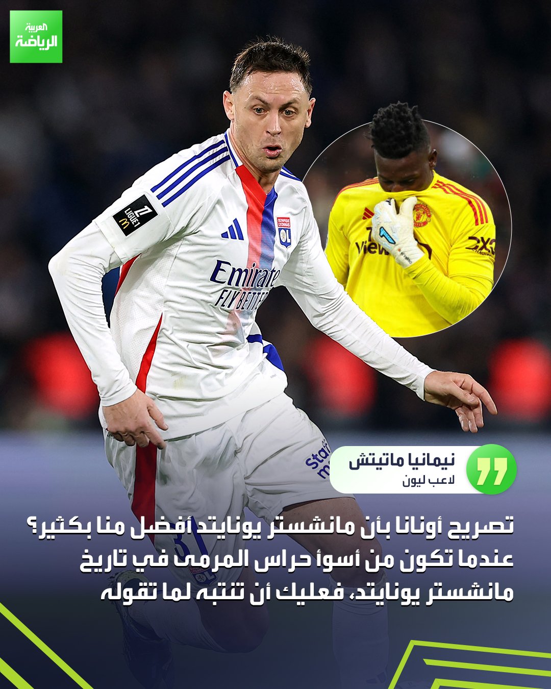 "أحد أسوأ الحراس في تاريخ مانشستر يونايتد". نيمانيا ماتيتش يرد بقوة على أندريه أونانا حارس مرمى مانشستر يونايتد _رياضة