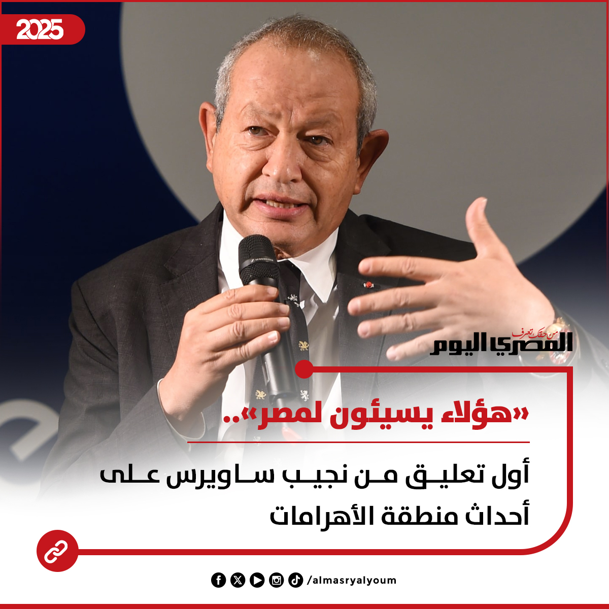 أول تعليق من نجيب ساويرس على أحداث منطقة الأهرامات: «هؤلاء يسيئون لمصر» #عاجل