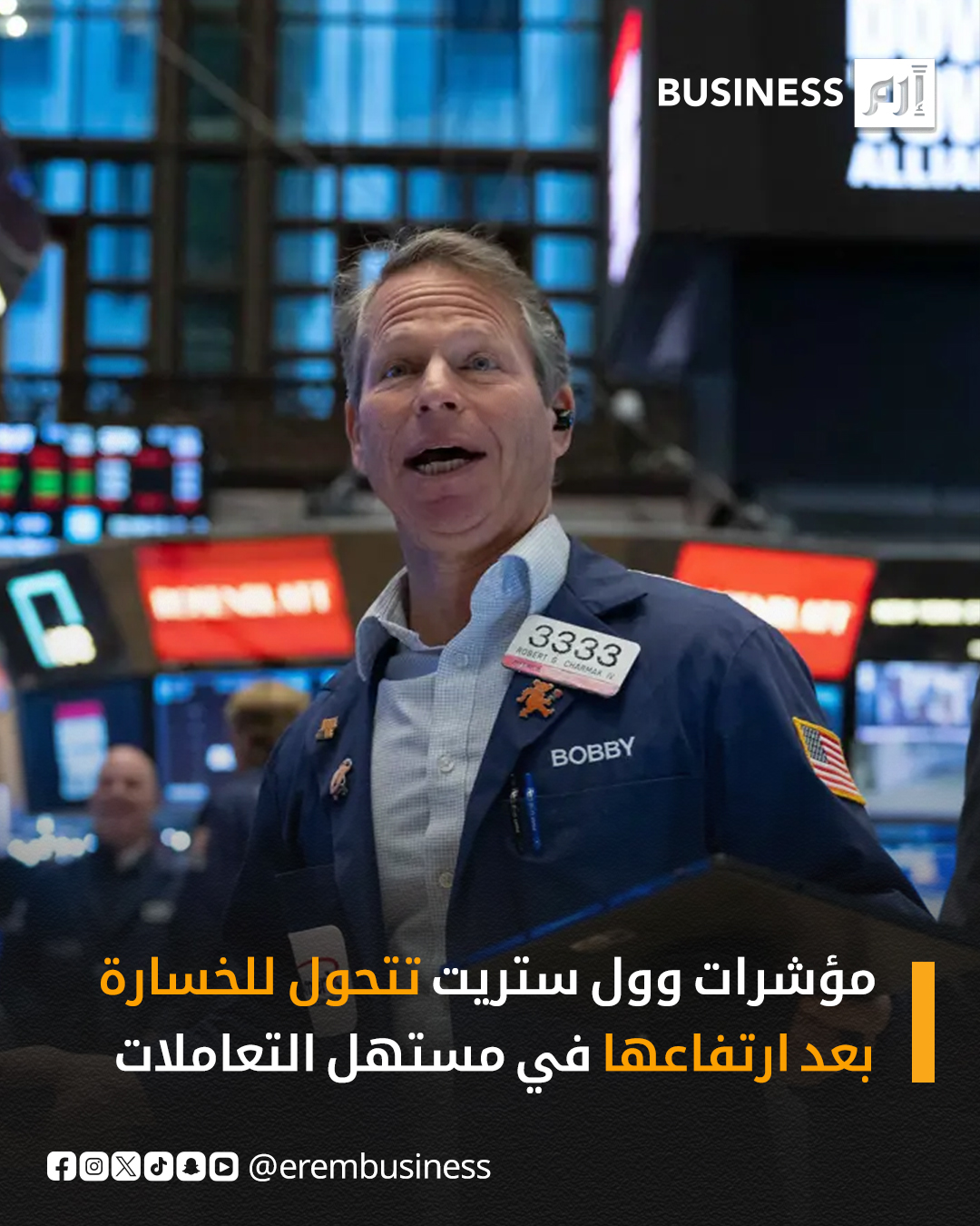 مؤشرات وول ستريت تتحول للخسارة بعد ارتفاعها في مستهل التعاملات اليوم