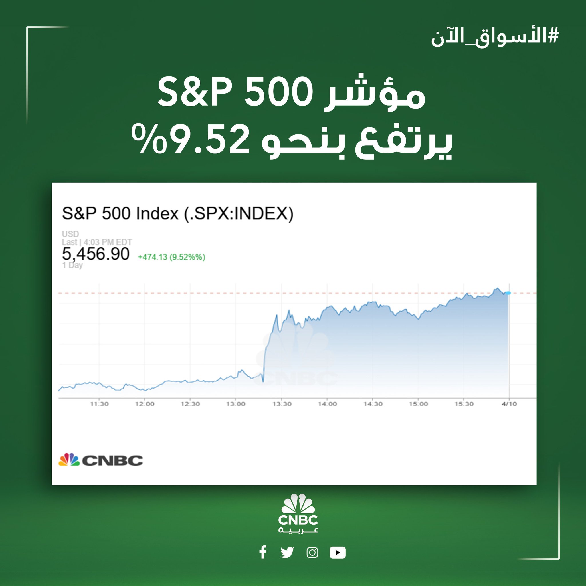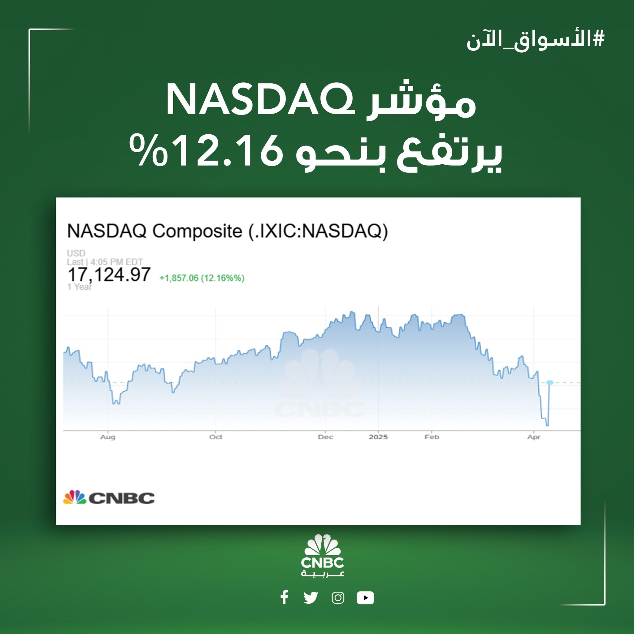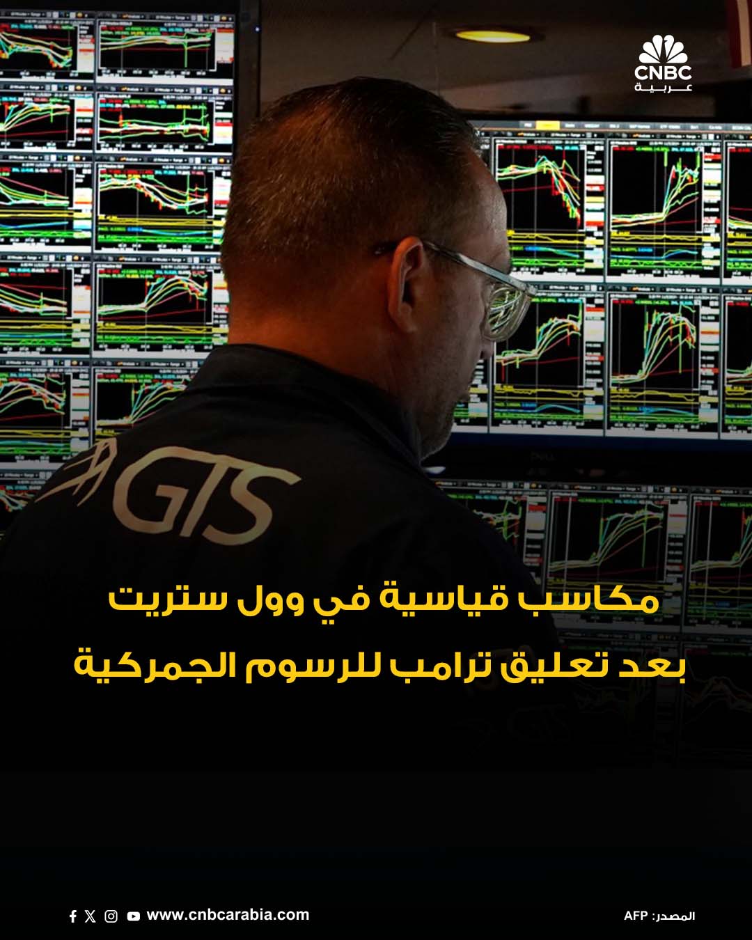 الأسواق_الآن| ارتفاعات جماعية في ختام جلسة الأربعاء في وول ستريت، عد أن أعلن الرئيس دونالد ترامب عن تعليق التعرفات الجمركية "المتبادلة". مؤشر Dow Jones يغلق على ارتفاع بنحو 7.87% - مؤشر S&P 500 يغلق على مكاسب بنسبة 9.52% - مؤشر يقفز بنحو 12.16% #عاجل
