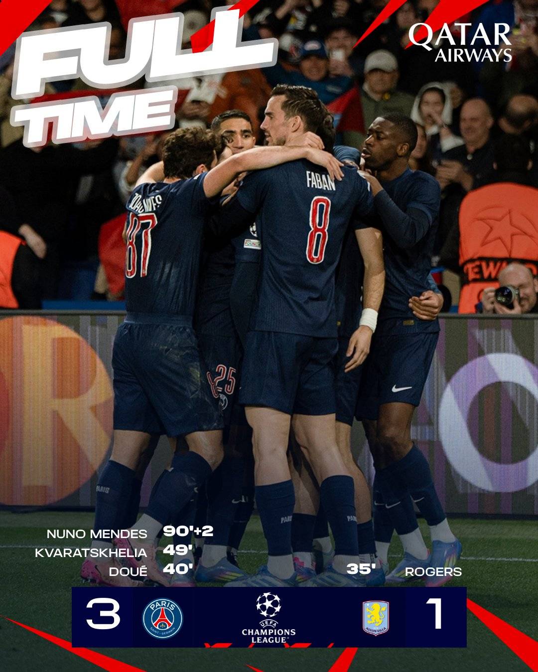 باريس سان جيرمان يقلب تأخره أمام أستون فيلا إلى فوز كبير بنتيجة 3-1 ليضع بذلك قدماً في نصف نهائي دوري أبطال أوروبا قبل مباراة العودة في إنجلترا.