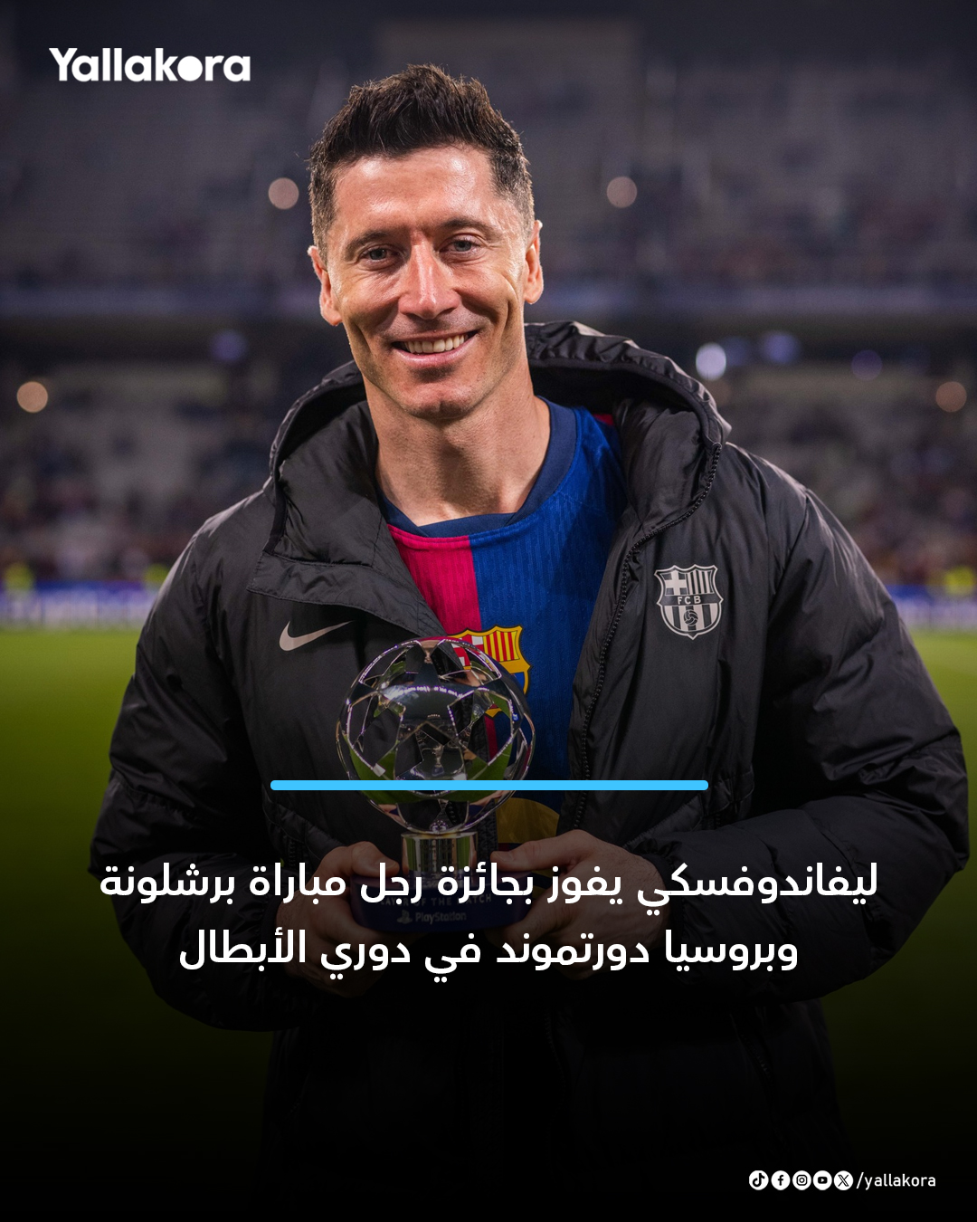 ليفاندوفسكي يفوز بجائزة رجل مباراة برشلونة وبروسيا دورتموند في دوري الأبطال