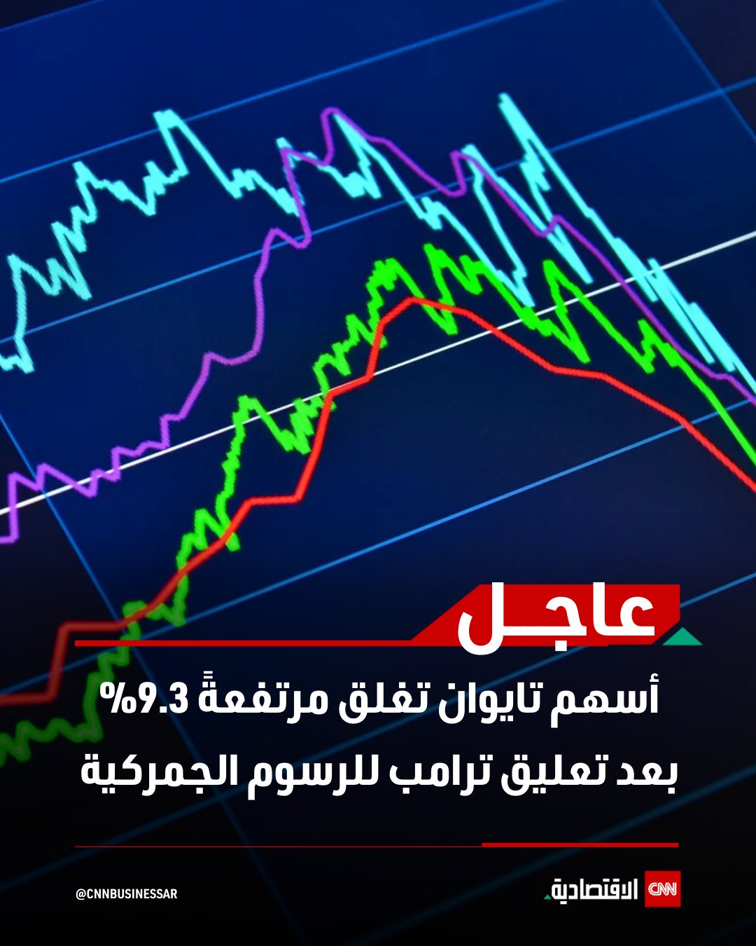 عاجل| أسهم تايوان تغلق مرتفعة بنسبة قياسية بلغت 9.3% بعد تعليق ترامب للرسوم الجمركية على معظم الدول.. ارتفع مؤشر تايكس 1608.27 نقطة ليصل إلى 19000.03، حيث قفزت شركتا التكنولوجيا العملاقتان تي إس إم سي وفوكسكون بنحو %10 لكلٍ منهما. #العالم_بلغة_الأعمال