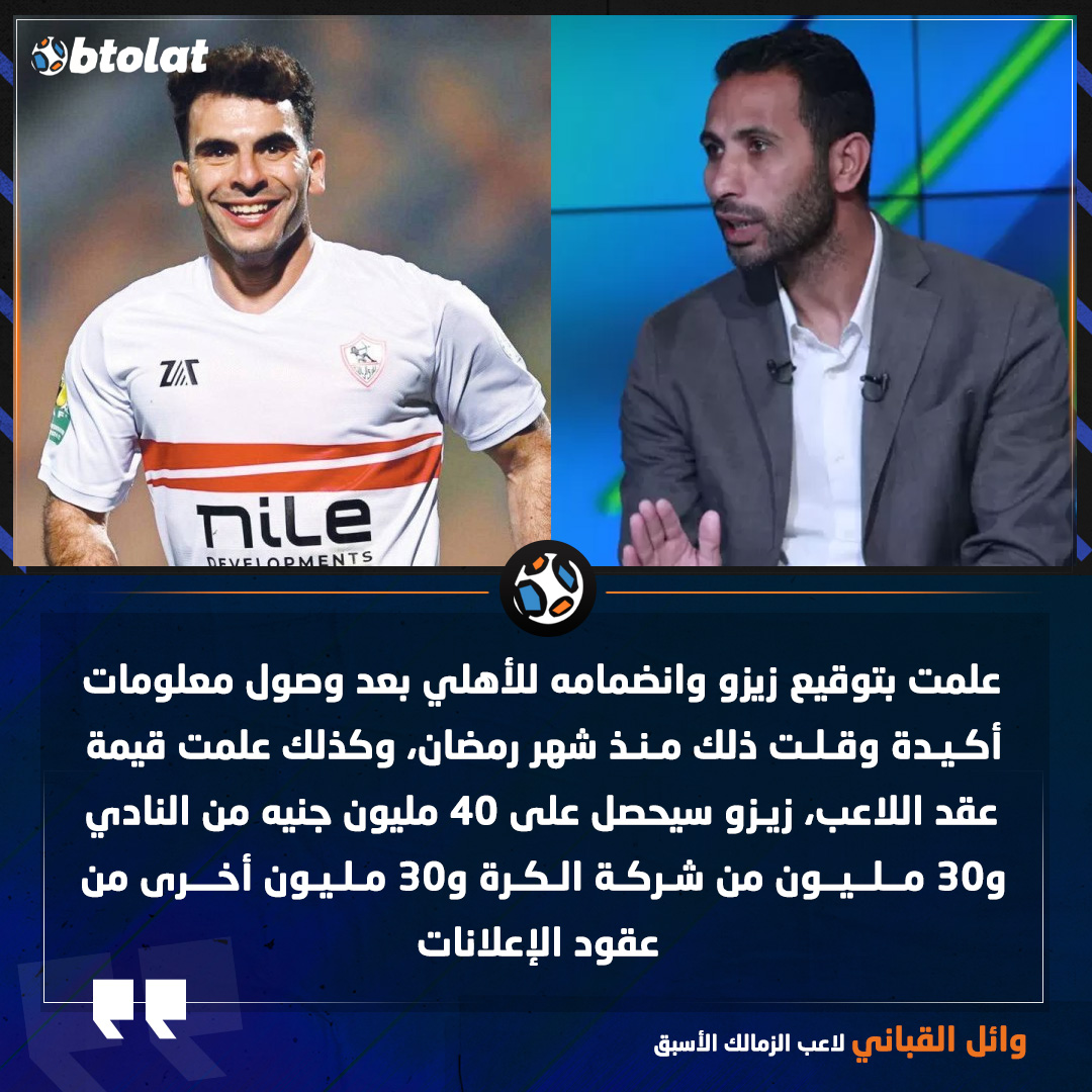 وائل القباني: زيزو سيحصل في الأهلي على 40 مليون جنيه من النادي و30 مليون من شركة الكرة و30 مليون أخرى من عقود الإعلانات