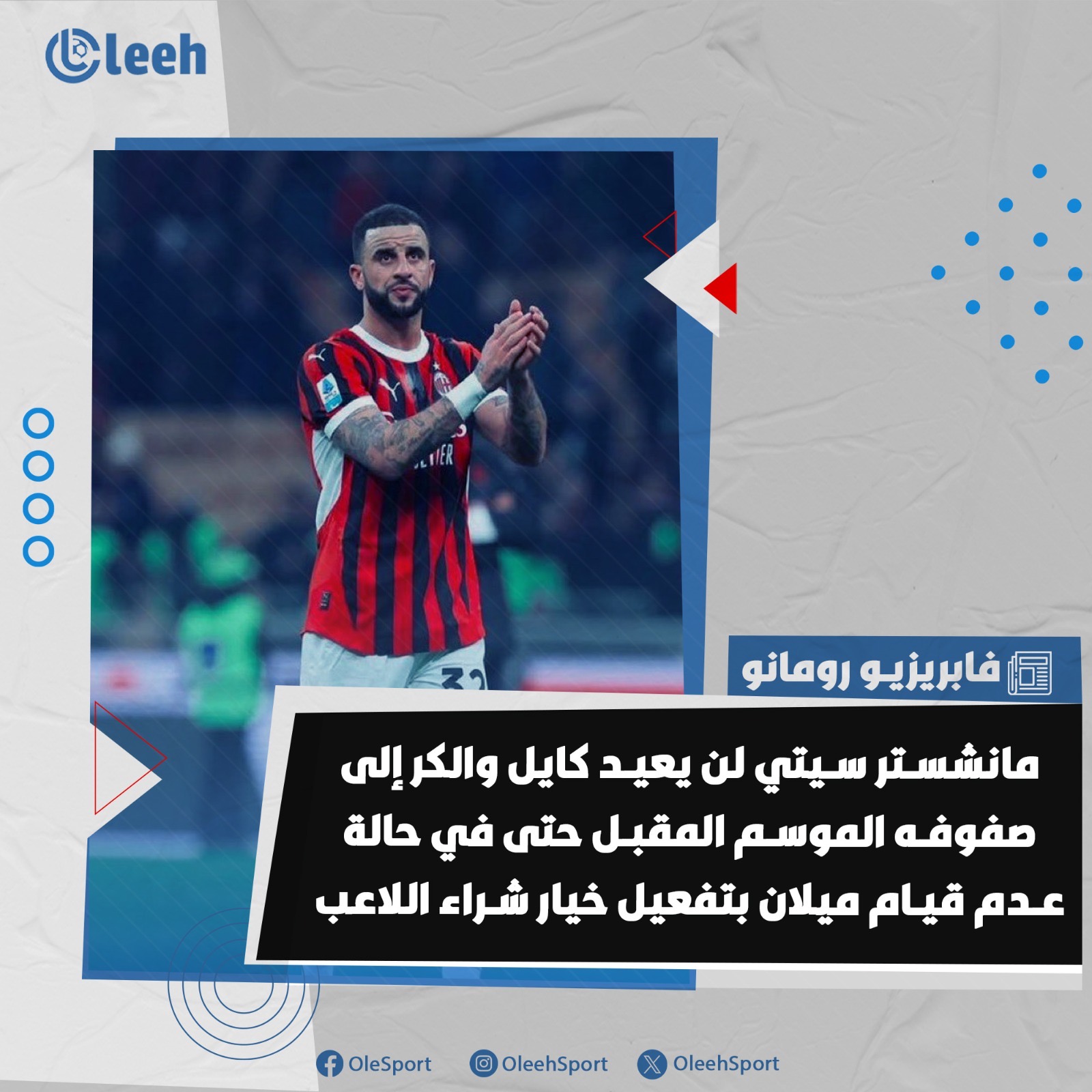 فابريزيو رومانو | كايل والكر خارج خطط مانشستر سيتي في الموسم المُقبل. اللاعب الإنجليزي لن يعود إلى مانشستر سيتي مجددًا حتى في حالة عدم قيام ميلان بتفعيل خيار شراءه