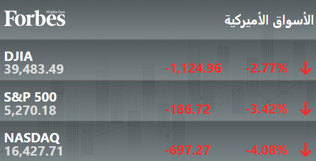 عاجل.. عودة موجة بيع الأسهم الكثيفة إلى وول ستريت بعد صعودها أمس بأرقام قياسية وافتتاحها على مكاسب قوية اليوم.. خسائر الداو جونز 1100 نقطة، وضغوط على أسهم التكنولوجيا.. خسائر تيسلا 7%، إنفيديا وابل يهبطان 5%، ونايكي 10% #فوربس