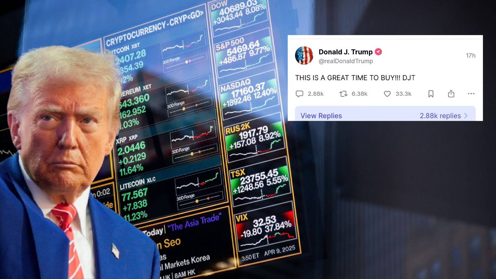 ـ التتبع الزمني وأسهم DJT التتبع الزمني لما كتبه ترامب هو ما استند إليه زعماء الحزب الديمقراطي في المطالبة بإجراء تحقيق فيما إذا كان منخرطاً في تداول داخلي في الساعات التي سبقت إعلان تعليقه للتعريفات الجمركية مؤقتاً، وهو ما نفاه البيت الأبيض على الفور. وفي الساعة 9:37 صباحاً بتوقيت شرق الولايات المتحدة يوم الأربعاء، كتب ترامب على منصته «تروث سوشيال»: «هذا وقتٌ رائعٌ للشراء»، وبعد الواحدة ظهراً بقليل، أعلن على المنصة نفسها أنه سيُوقف معظم تعريفاته الجمركية الجديدة، ما أدى إلى ارتفاع حاد في أسواق الأسهم المتدهورة.