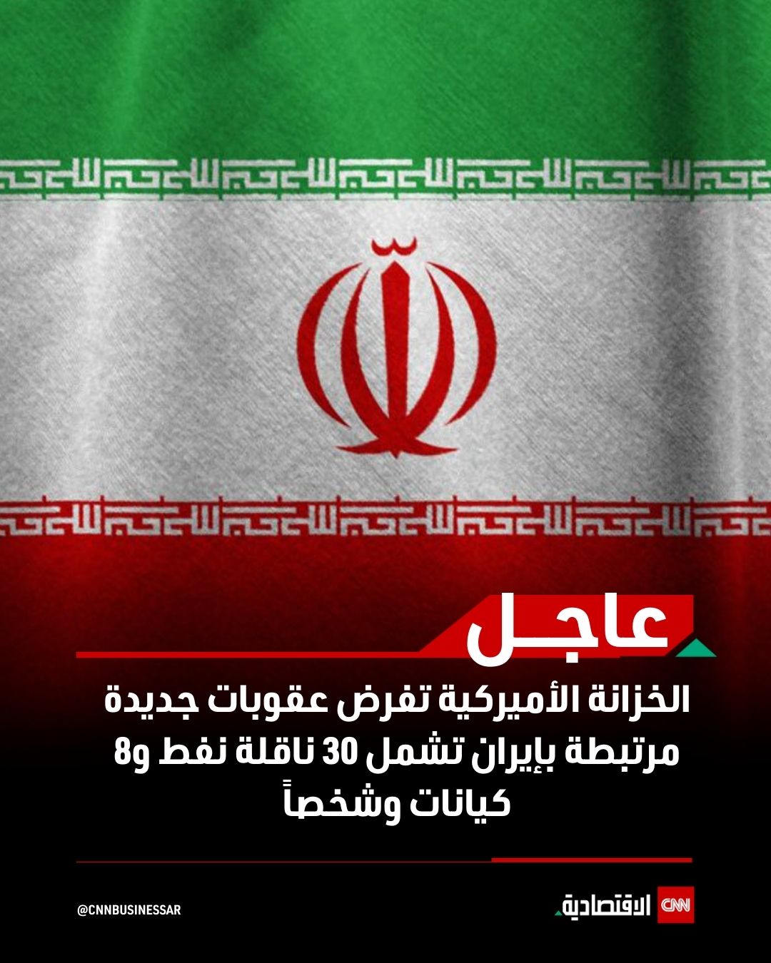 عاجل الخزانة الأميركية تفرض عقوبات جديدة مرتبطة بإيران تشمل 30 ناقلة نفط و8 كيانات وشخصاً #العالم_بلغة_الأعمال