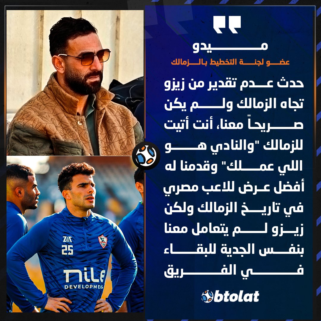 ميدو: حدث عدم تقدير من زيزو تجاه الزمالك ولم يكن صريحاً معنا