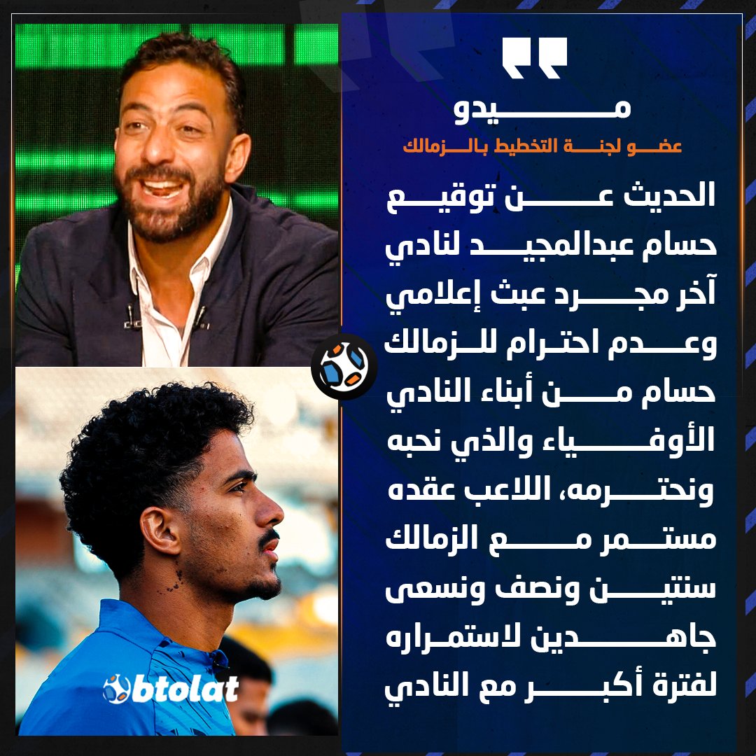 ميدو: نسعى جاهدين لاستمرار حسام عبد المجيد لفترة أكبر مع النادي