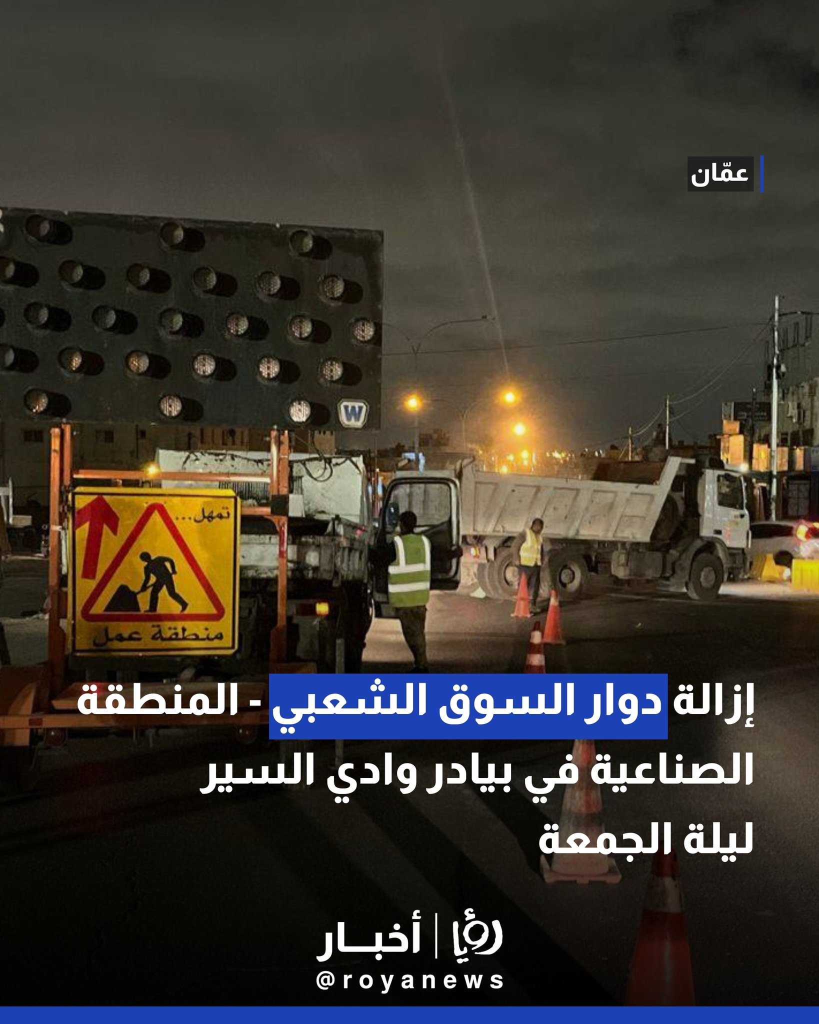 أعلن رئيس اللجنة المحلية لمنطقة وادي السير، الدكتور محمد المهيرات، عن إزالة دوار السوق الشعبي - المنطقة الصناعية في منطقة البيادر خلال ليلة الجمعة، في إطار تحسين الحركة المرورية وتطوير البنية التحتية في المنطقة.