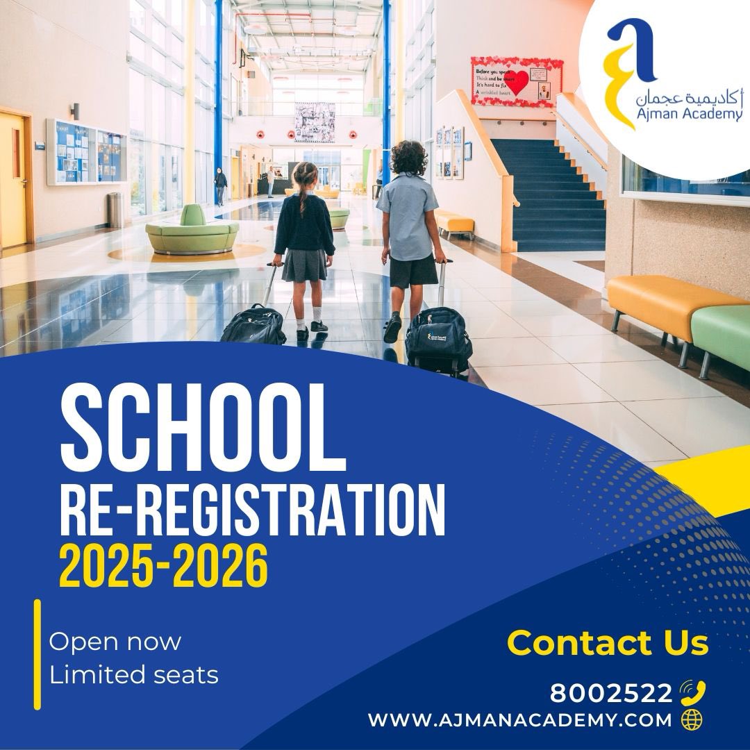 مرحبًا بكم في أكاديمية عجمان، حيث تبدأ التميز والإنجازات في التعليم من الخطوات الأولى في مرحلة ما قبل الروضة وصولًا إلى الصف الثاني عشر وما بعده. #أكاديمية_عجمان